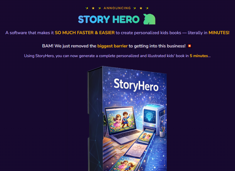 StoryHero is a cloud-based AI software that creates fully illustrated, personalized children’s books in about